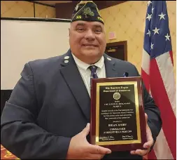 BRISTOL — Legion Post 209 Brian Avery was presented with the Louis E. Milinaro Plaque, which honors the American Legion Post Commander of the Year, this past Sunday at the American Legion Department of Connecticut’s annual convention.